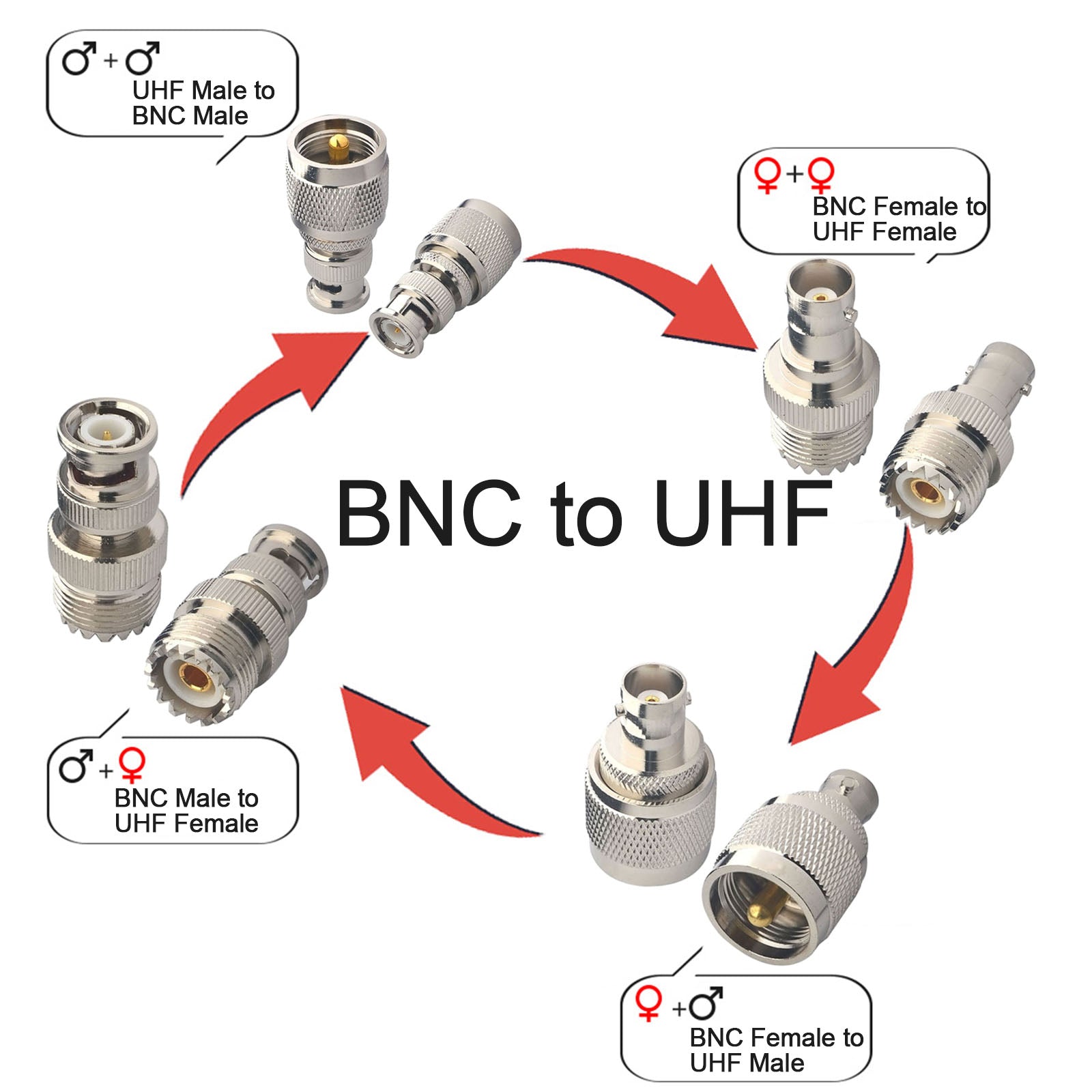 - Adapter type: BNC to UHF kit | Style: Straight | Frequency: DC-300MHz | Impedance: 50 Ohm